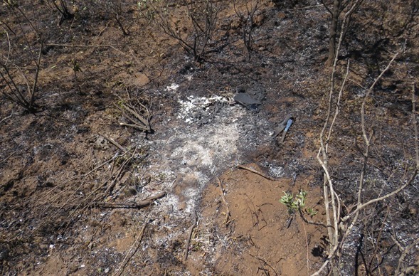 El lugar del hallazgo se encontraba en un sector sin indicios de fuego, dentro de una ladera de fuerte pendiente, con una inclinación aproximada de 80 grados, lo que hace que el desplazamiento en la zona resulte sumamente dificultoso y riesgoso.