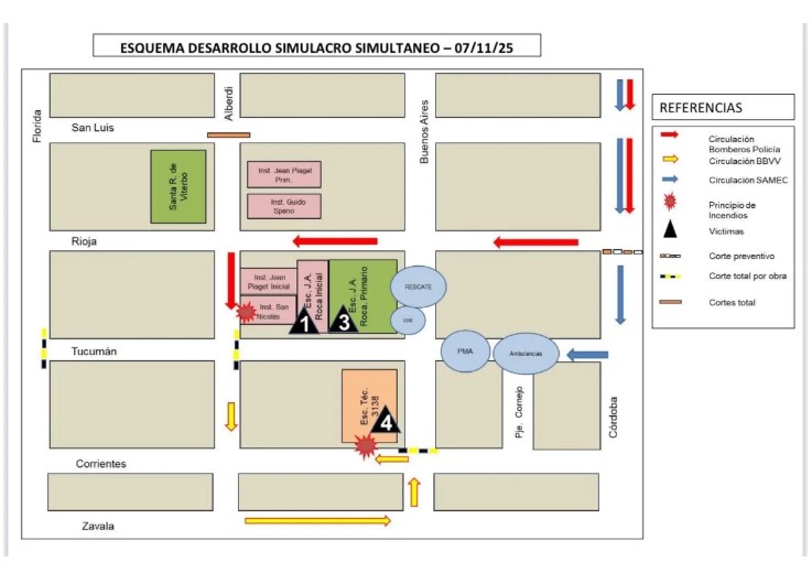 La hipótesis será de sismo de gran intensidad con principio de incendio. Comenzará a las 9.30 y participarán alrededor de 5 mil personas de seis establecimientos educativos públicos y privados del cuadrante: Av. Corrientes a San Luis y Córdoba a Florida.