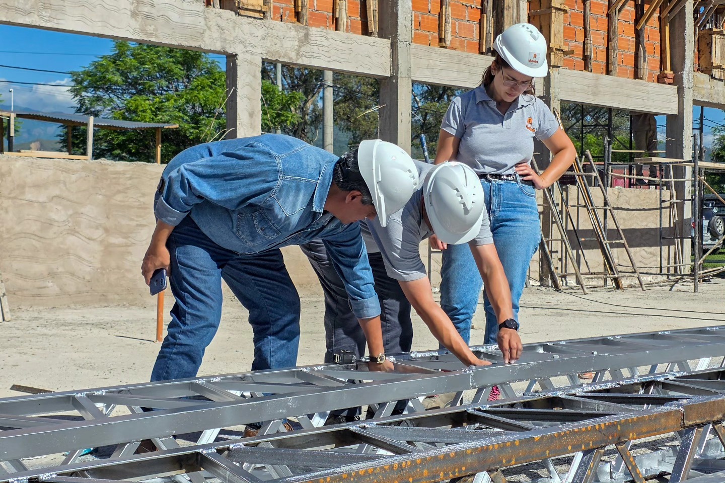 En la jornada de hoy, equipos técnicos de la Gerencia de Agua Potable y Saneamiento realizaron una revisión en el predio donde se constató el progreso de los trabajos, particularmente el montaje y estado de las vigas de acero que serán izadas para sostener la estructura del techo. Esta etapa representa un hito relevante dentro del proceso de construcción.