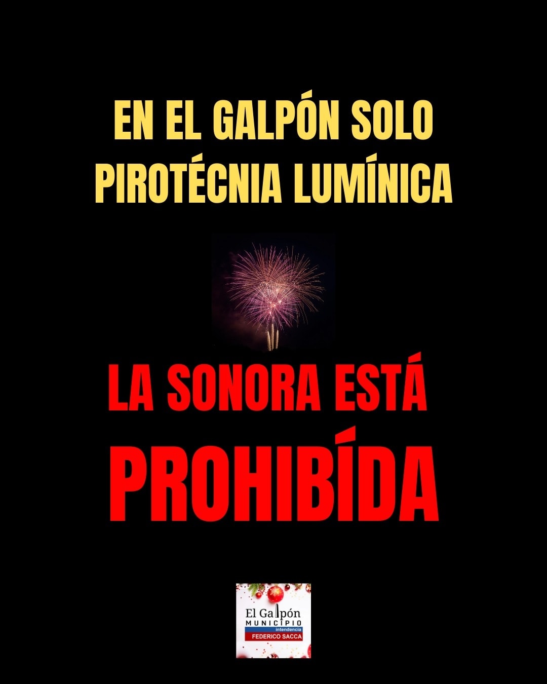 La Oficina de Rentas Municipal de El Galpón informa a la comunidad que, en el ámbito de la localidad, solo dos comercios se encuentran debidamente autorizados para la venta de pirotecnia lumínica, no sonora, en cumplimiento de la normativa vigente. Solo dos comercios están habilitados para la venta: Chayes y Andrea Figueroa
