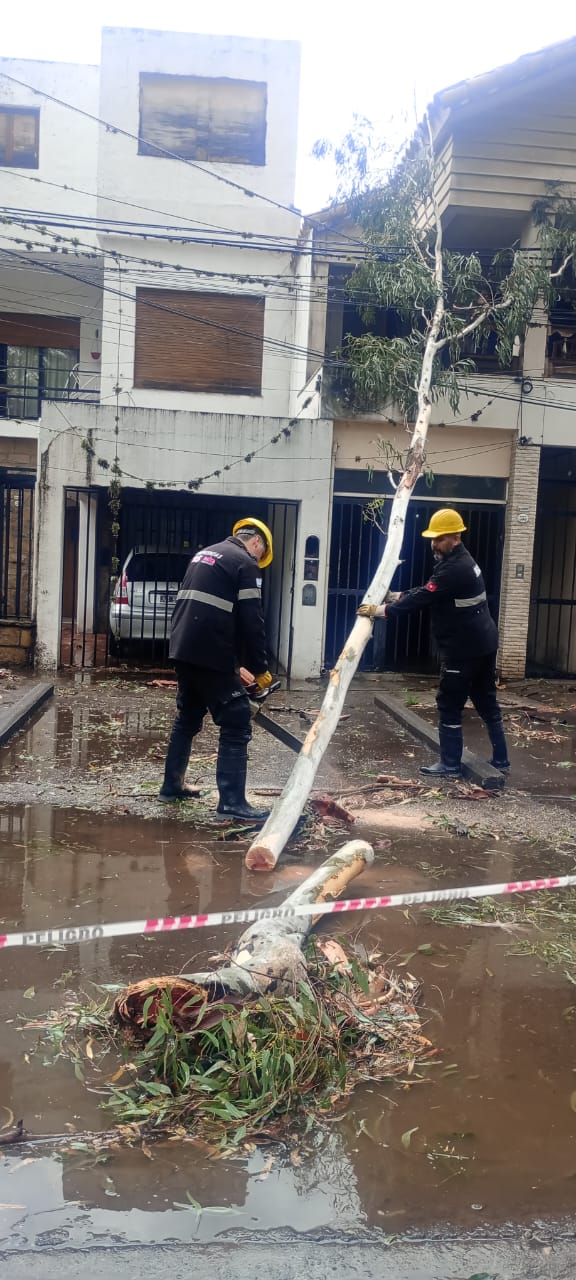 Personal de la Subsecretaría de Protección Ciudadana realiza recorridos permanentes por los sectores afectados, interviniendo ante situaciones de riesgo y trabajando de manera preventiva para garantizar la seguridad de vecinos y transeúntes. En paralelo, equipos de la Secretaría de Desarrollo Social recorren los barrios para relevar las necesidades de las familias damnificadas. Algunas viviendas sufrieron ingreso de agua y otras registraron daños por voladura de techos.