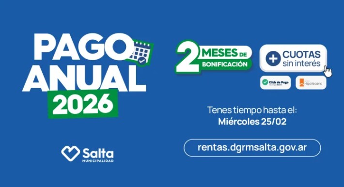 Desde hoy la Municipalidad de Salta pone en vigencia el Pago Anual de Tributos Municipales 2026. El programa de incentivo al pago por adelantado de los impuestos tiene dos modalidades: anual y semestral.