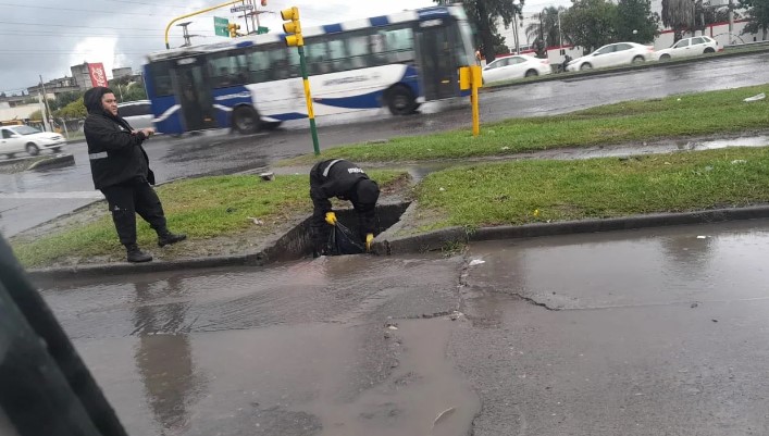 Durante esta tarde se limpiaron rejillas de desagüe pluvial en diferentes puntos críticos del municipio.