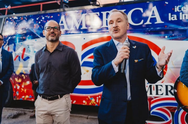 La visita del diplomático se dio en el contexto del evento cultural “América 250 Bus”, una iniciativa que recorre el país conmemorando el 250° aniversario de la independencia de Estados Unidos. En este marco, Lamelas también realizó visitó los puntos icónicos de la ciudad a bordo del autobús turístico.